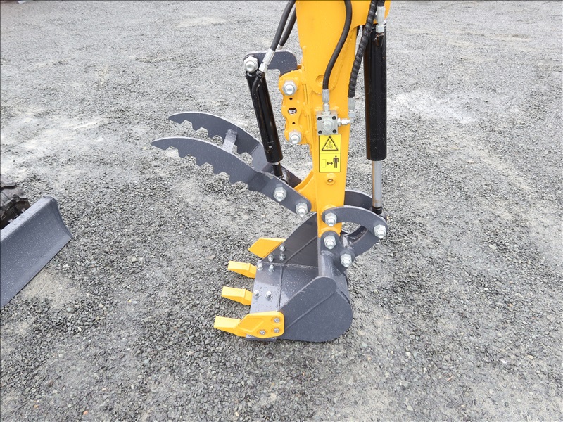 MINI EXCAVATOR, 13.5 HP BRIGGS & STRATTON 1 CYL GAS, SWING BOOM, 14" BUCKET, HYD THUMB, AUX HYD, BLADE, RUBBER TRACKS, CANOPY