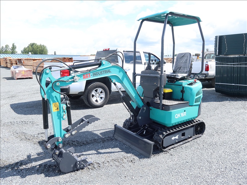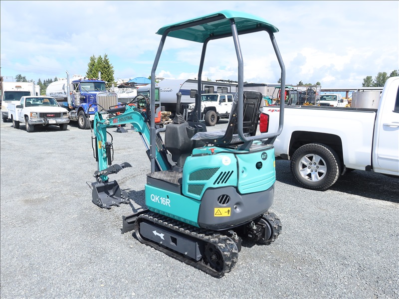MINI EXCAVATOR, 13.5 HP RATO 1 CYL GAS, 13" BUCKET, HYD THUMB, AUX HYD, BLADE, RUBBER TRACKS, CANOPY