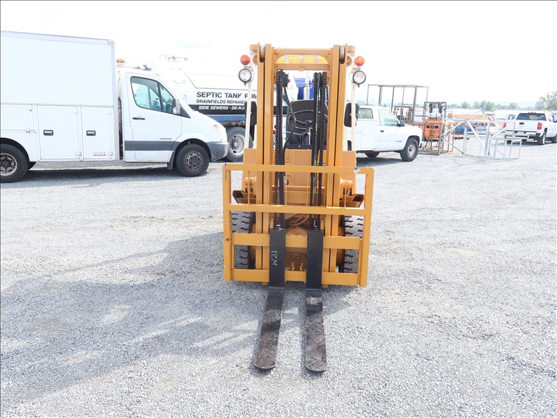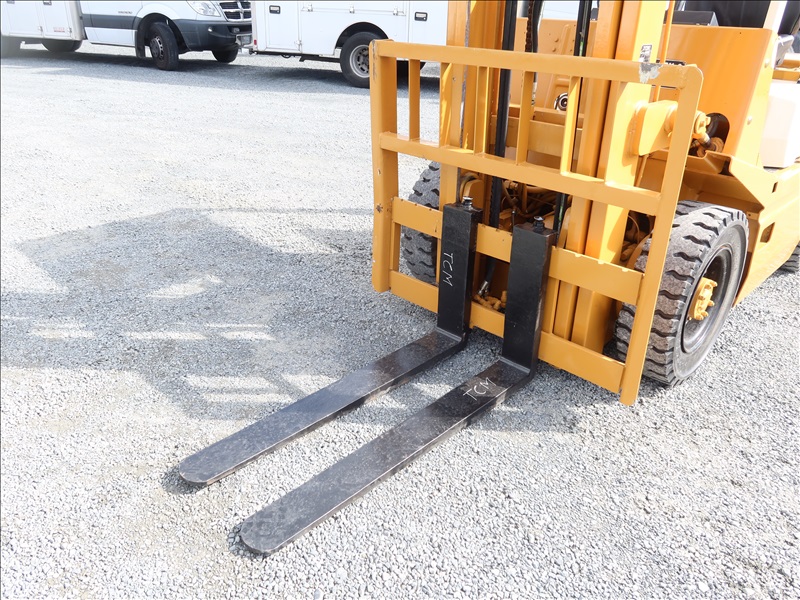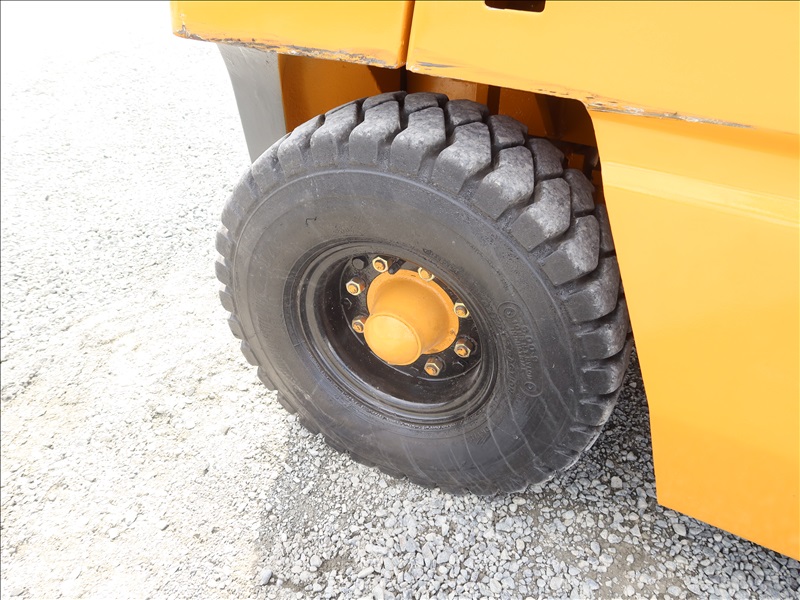 5,000 LB SOLID TIRE FORKLIFT, 118" FORK HEIGHT, 2-STAGE MAST, ISUZU 4 CYL DIESEL (NO HOUR METER)