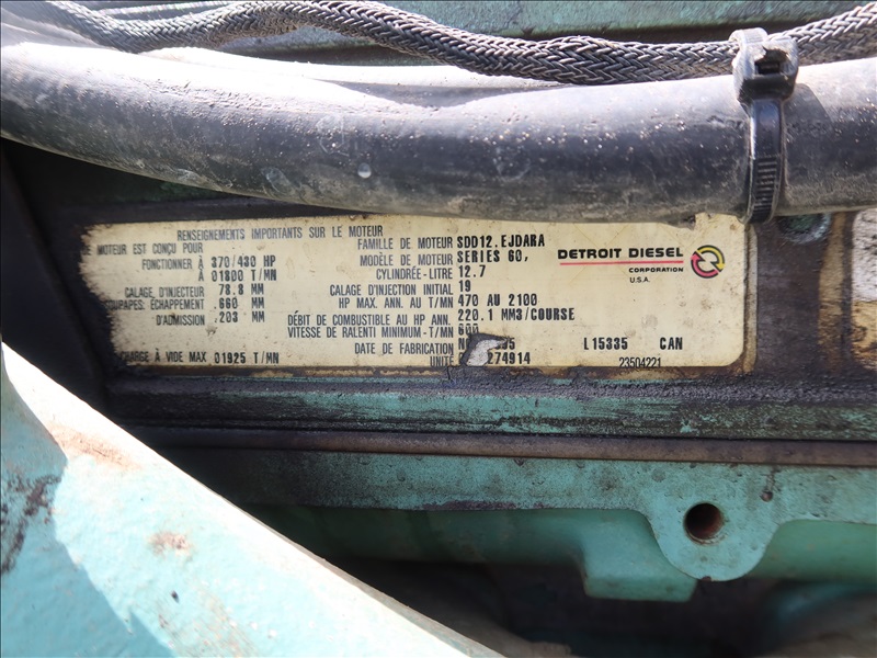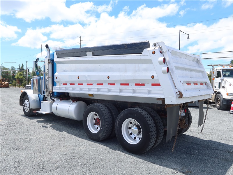 T/A, DUMP TRUCK, 15' ALUMINUM BOX, 430 HP DETROIT SERIES 60, 9 SPD, AIR SUSPENSION, 223" W/B, 12,000 LB FRONT, 34,000 LB REARS, A/B