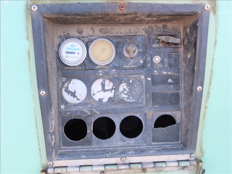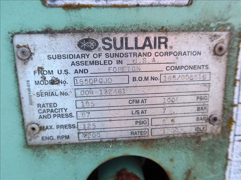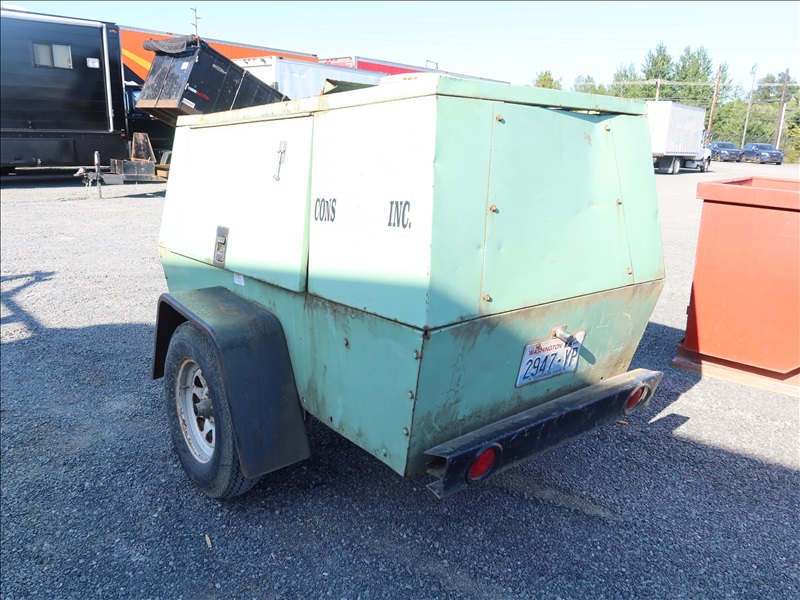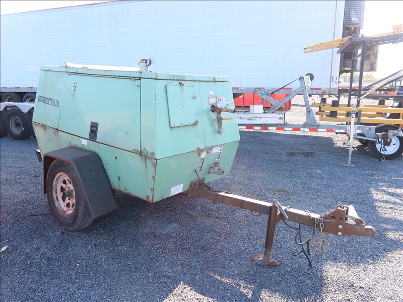 S/A, 185 CFM, 100 PSI TRAILER MOUNTED AIR COMPRESSOR, SPRING SUSPENSION, JOHN DEERE 85 HP DIESEL, 205/75D15, HOUR METER READS: 3,138