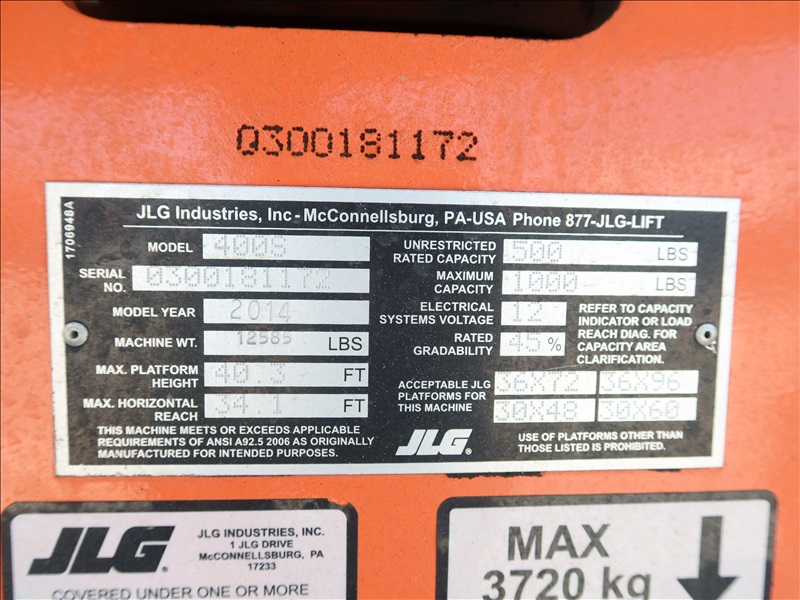 4WD TELESCOPIC FORKLIFT, 40.3' PLATFORM HEIGHT, 34.1' HORIZONTAL REACH, 500 LB CAPACITY, A/C RECEPTACLE AT PLATFORM, DEUTZ D201.1L03
