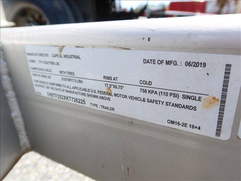 T/A, 20' 17,000 LB GVWR TILT DECK FLATBED TRAILER, TORSION SUSPENSION, ELECT BRAKES, 215/75R17.5