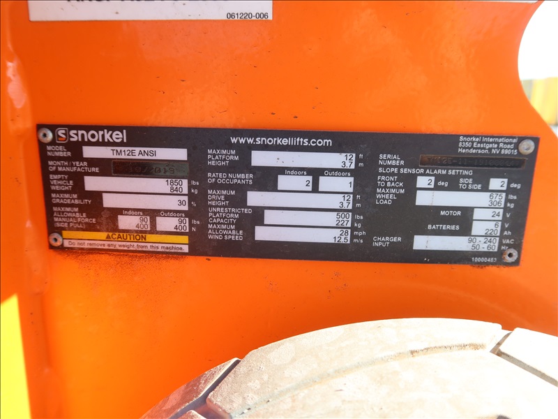 2019 SNORKEL TM12E TELESCOPIC MAST LIFT