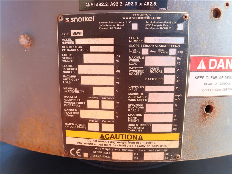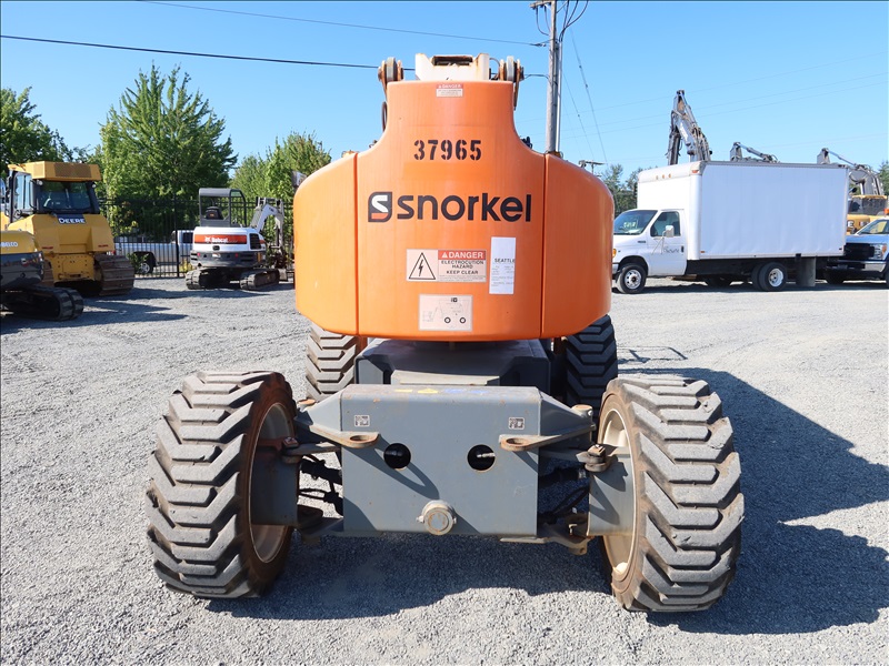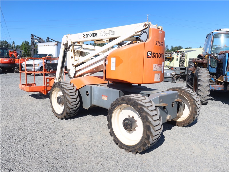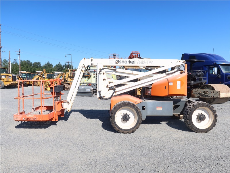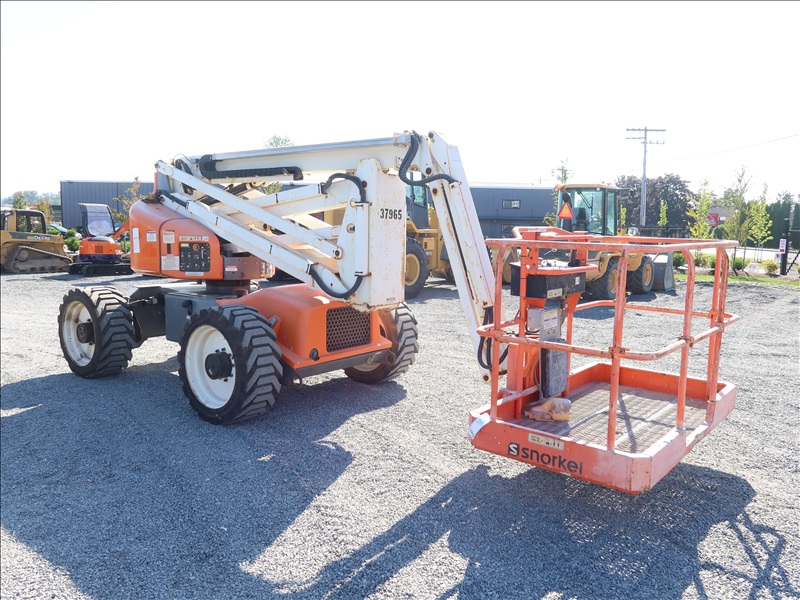 4WD ARTICULATED BOOM LIFT, 46.4' PLATFORM HEIGHT, 24.5' HORIZONTAL REACH, 500 LB CAPACITY, A/C RECEPTACLE AT PLATFORM, KUBOTA V1505