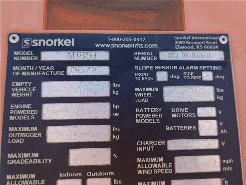 4X4 ARTICULATED BOOM LIFT, 84.6' PLATFORM HEIGHT, 61.11 HORIZONTAL REACH, 500 LB CAPACITY, A/C RECEPTACLE AT PLATFORM, KUBOTA V2403T