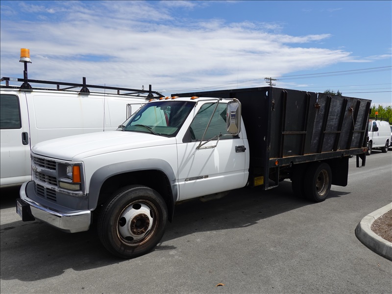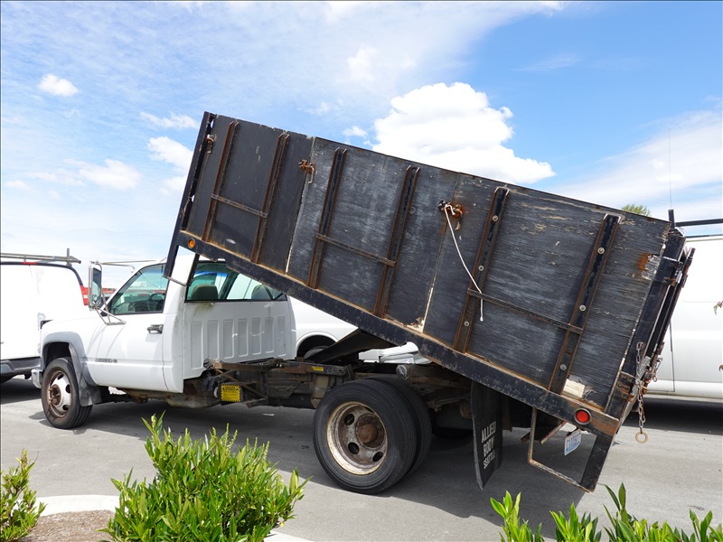 12' FLATBED DUMP, V8, AUTO, DRW (FUEL GAUGE DOES NOT WORK)