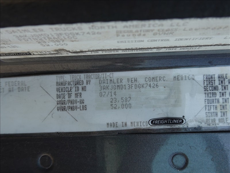 T/A, SLEEPER TRACTOR, 560 HP DETROIT DD16, 13 SPD, AIR SUSPENSION, 266" W/B, 12,000 LB FRONT, 40,000 LB REARS, SLIDER, A/B
