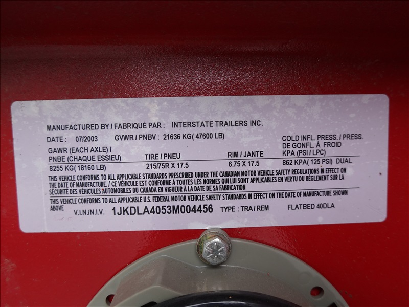 T/A, 47,600 LB GVWR 24.5' X 8.5' EQUIPMENT TRAILER, SPRING SUSPENSION, RAMPS, A/B, 215/75R17.5