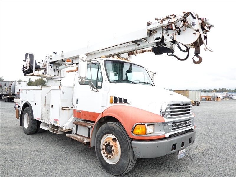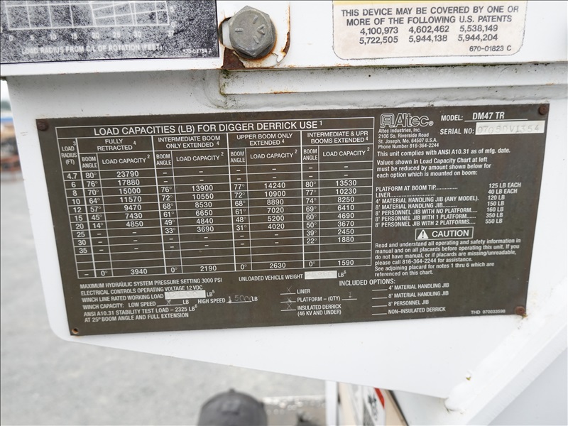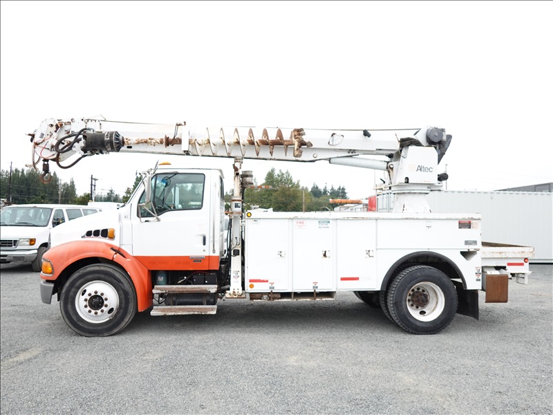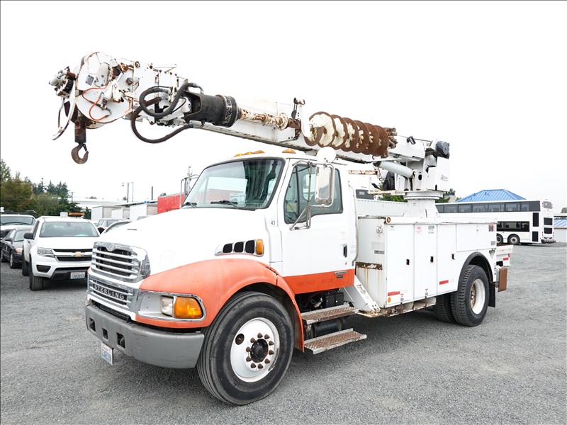 DIGGER DERRICK, MERCEDES 6 CYL DIESEL, AUTO, ALTEC DM47TR, 8' AUGER, HYD OUTRIGGERS, A/B