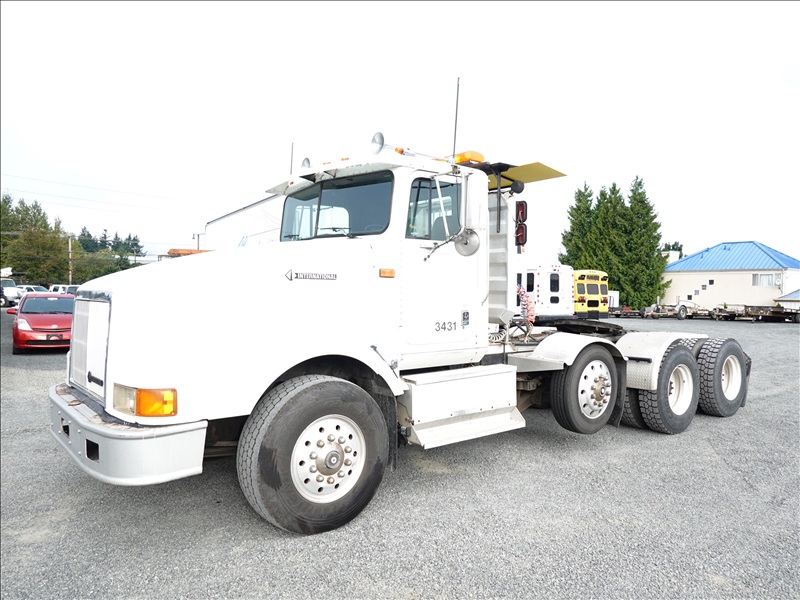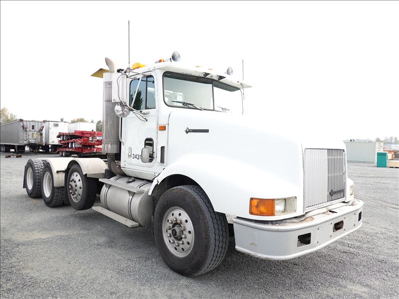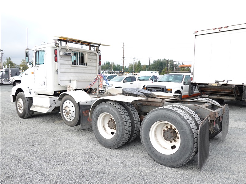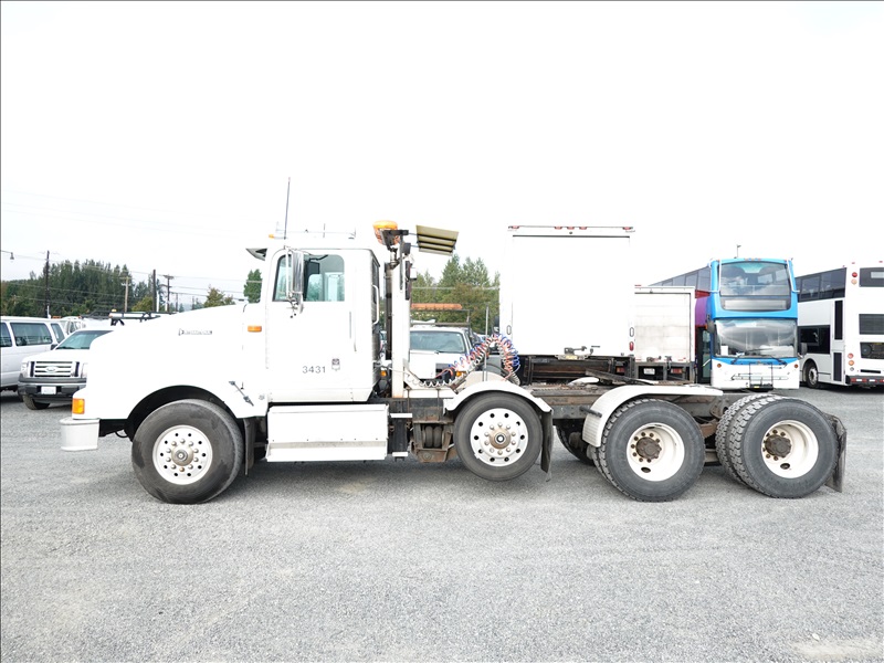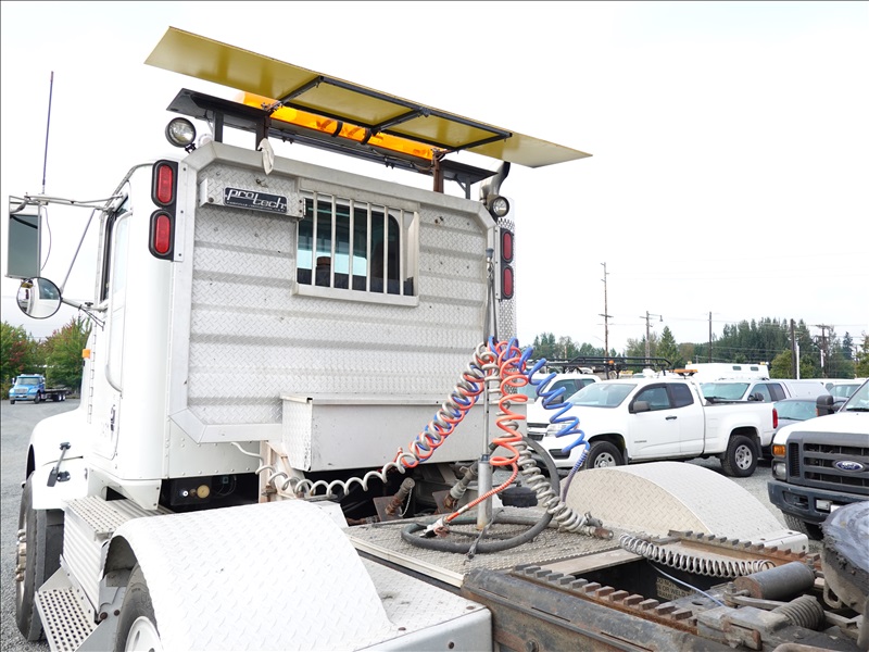 T/A, DAY CAB, TRACTOR, 460 HP CUMMINS N14, 18 SPD, SPRING BEAM SUSPENSION, 215" W/B, 12,000 LB FRONT, 23,000 LB REARS, DROP AXLE, WET KIT, A/B