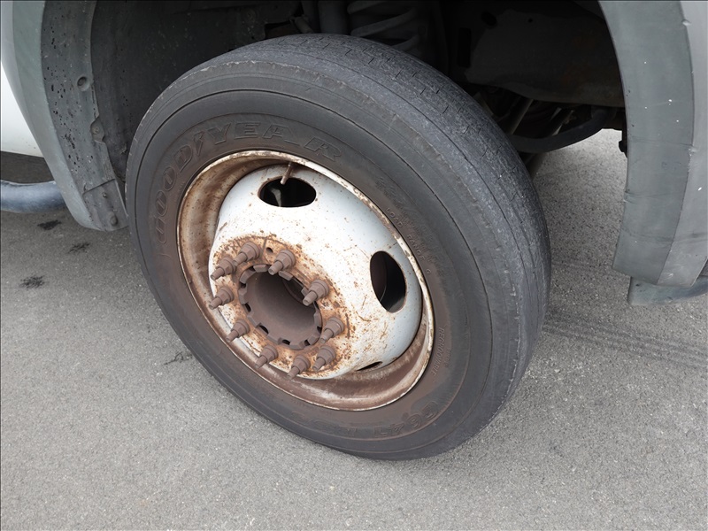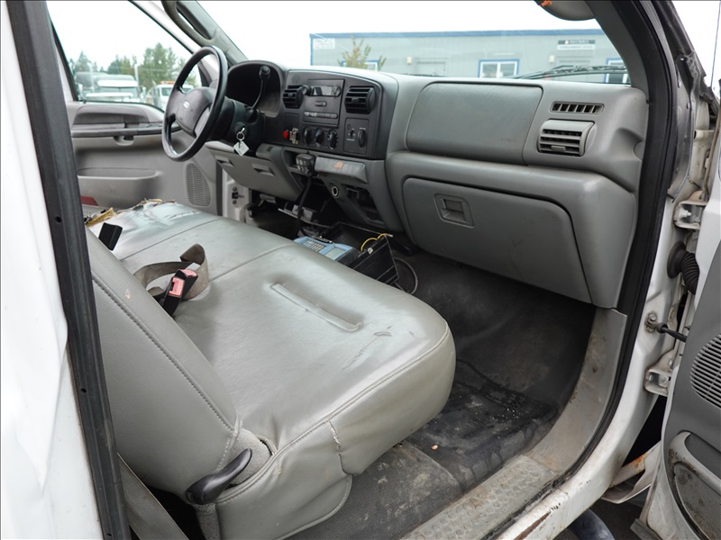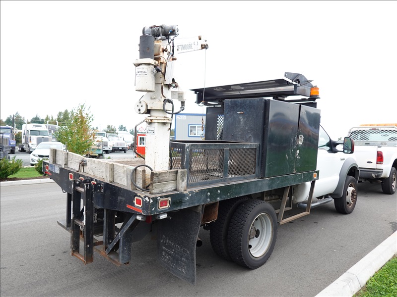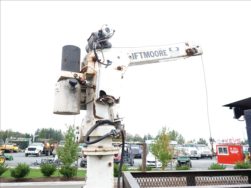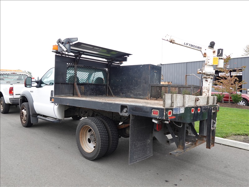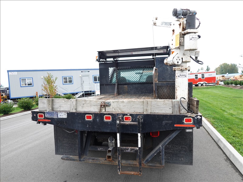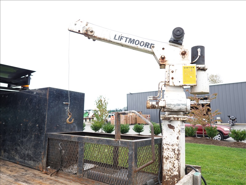 10' FLATBED, FORD V10, AUTO, LIFTMOORE CRANE, OVERHEAD SIGN BOARD