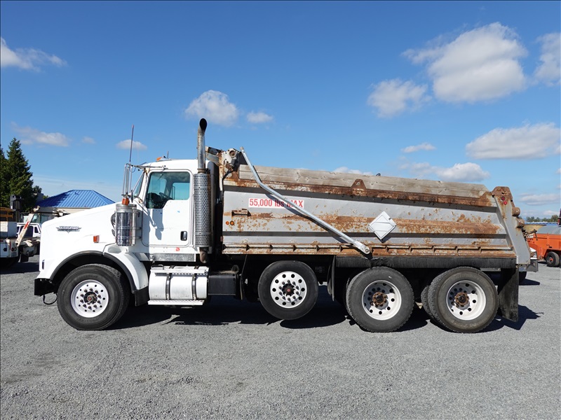 TRI/A, DUMP TRUCK, 16' STEEL BOX, TARP SYSTEM, 475 HP CAT C-15, 18 SPD, CHALMERS SUSPENSION, 240" W/B, 18,000 LB FRONT, 40,000 LB REARS, DROP AXLE, A/B