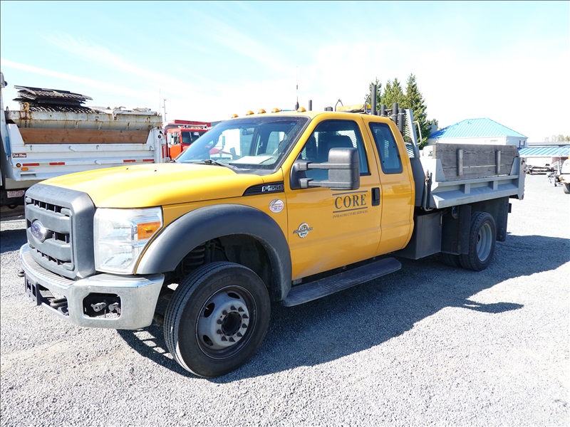 EXT CAB DUMP TRUCK, 9' STEEL BOX, POWER STROKE, AUTO, PLUMBED FOR PUP (CHECK ENGINE LIGHT IS ON)