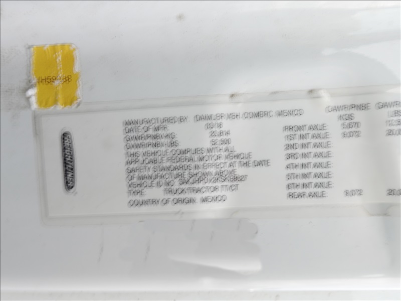 T/A, SLEEPER, TRACTOR, DETROIT DD15, AUTO, AIR SUSPENSION, 222" W/B, 12,500 LB FRONT, 40,000 LB REARS (ENGINE ISSUES, ENGINE PROTECT SHUTS DOWN)