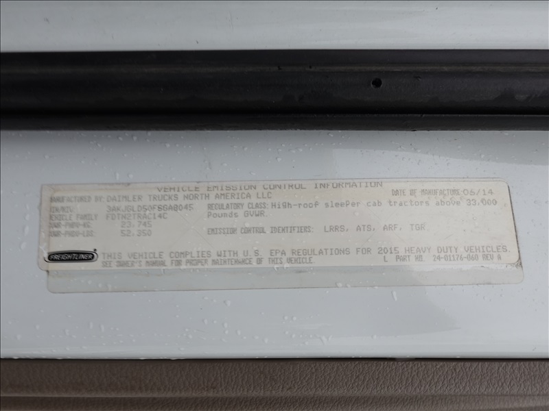 T/A, SLEEPER, TRACTOR, 505 HP DETROIT DD15AT, AUTO, AIR SUSPENSION, 232" W/B, 12,350 LB FRONT, 40,000 LB REARS, SLIDER, THERMO KING AUX A/C UNIT, A/B