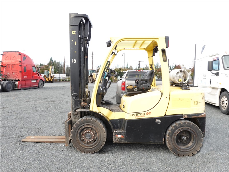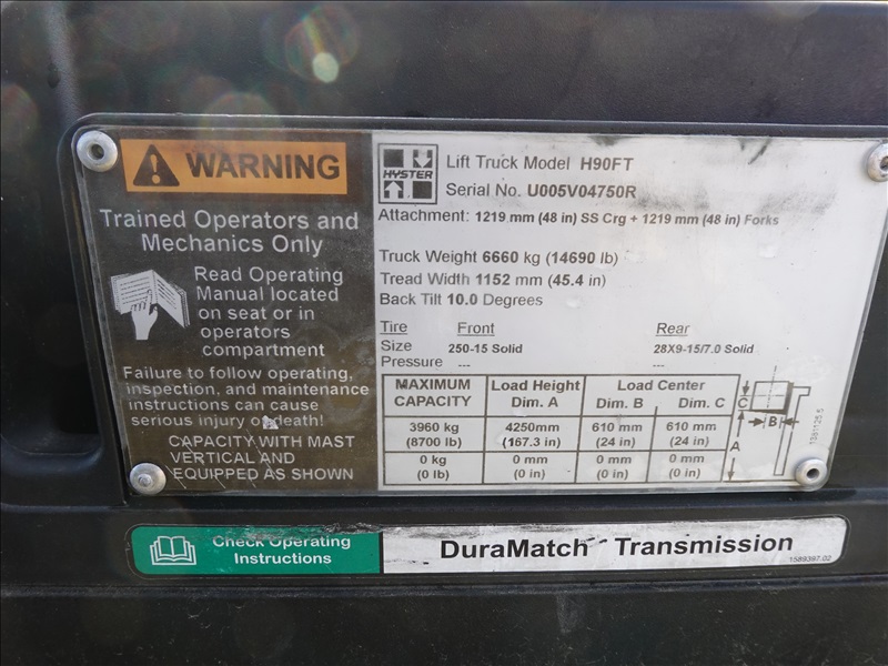 8,700 SOLID TIRE FORKLIFT, 167" FORK HEIGHT, 2-STAGE MAST, 6 CYL LPG