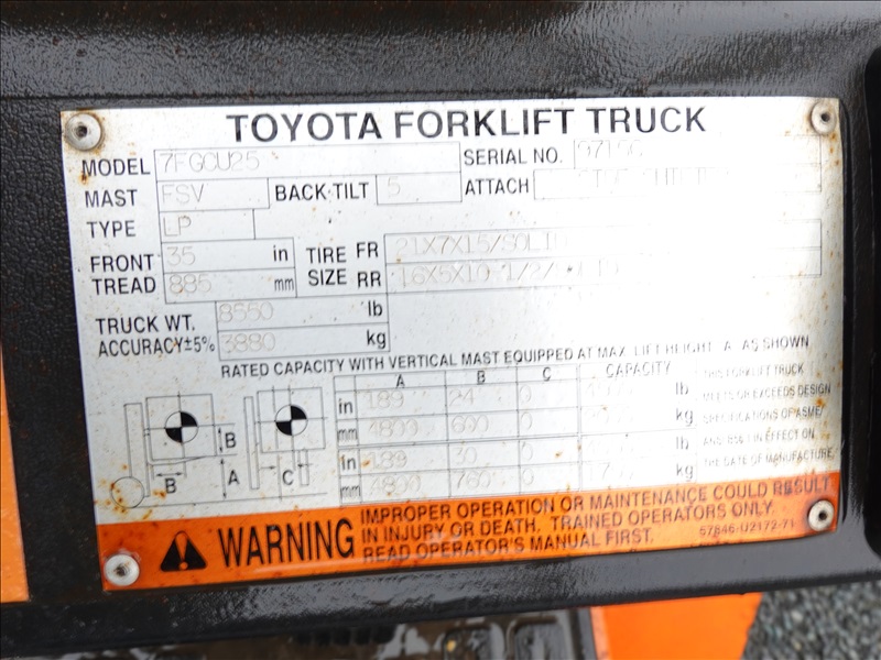 4,500 LB HRT FORKLIFT, 189" FORK HEIGHT, 3-STAGE MAST, SIDE SHIFT, 4 CYL LPG
