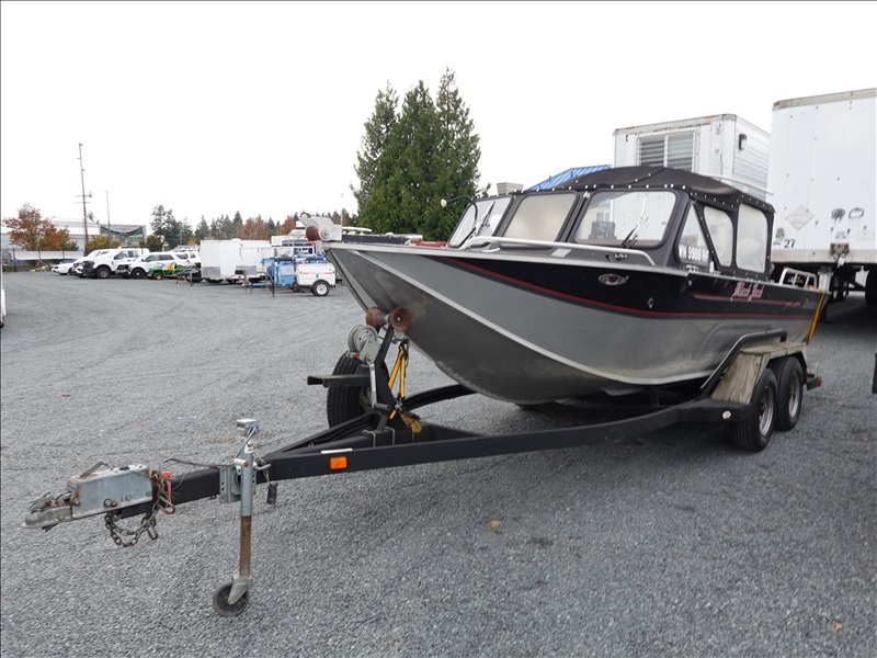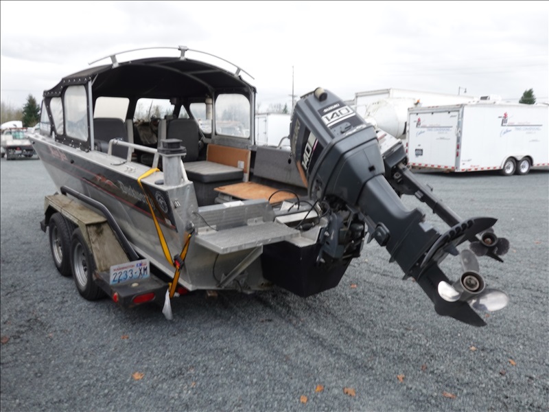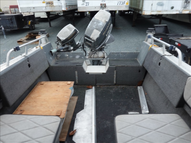 19' BOAT, 140 HP SUZUKI OUTBOARD, CONSOLE W/STANDARD HORIZON GPS, 9.9 HP SUZUKI KICKER MOTOR W/1997 ARMA T/A , APPROX 21' STEEL BOAT TRAILER, TORSION SUSPENSION, SURGE BRAKES, 205/75R14 TRAILER S/N: 4A1DT2110VW001132