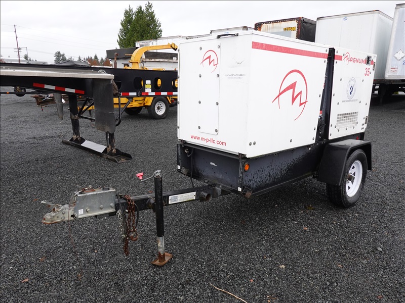 S/A, 33 KVA TRAILER MOUNTED GENERATOR, JOHN DEERE 4 CYL DIESEL, 208/240/480V, SINGLE & 3 PHASE, SURGE BRAKES