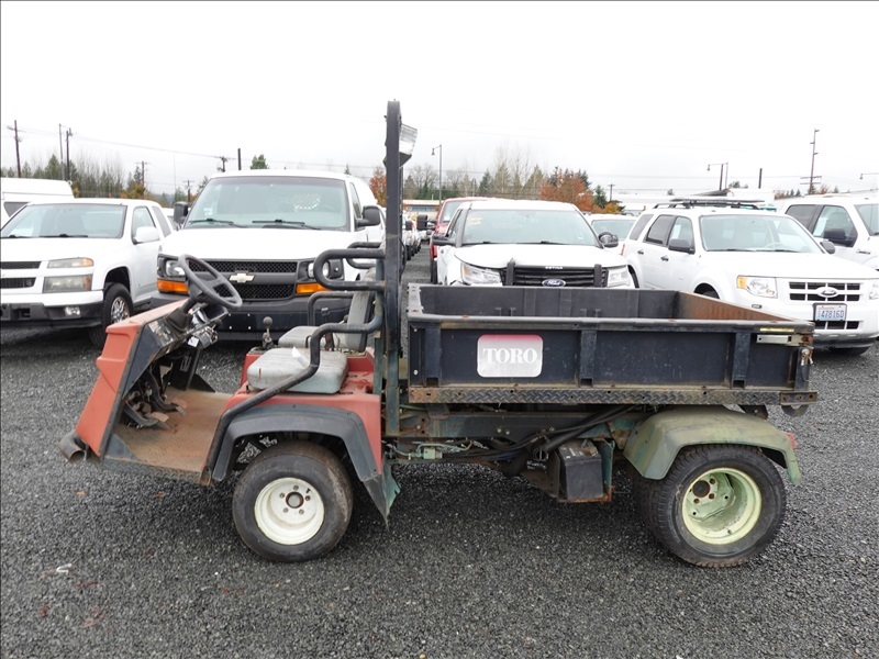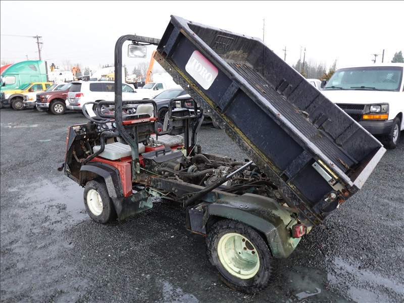 2WD UTILITY VEHICLE, MITSUBISHI 3 CYL GAS, 3 SPD, 2-RANGE, HYD DUMP BOX, AUX HYD (CITY DISCLOSURE: LEFT REAR WHEEL LOCKED UP)