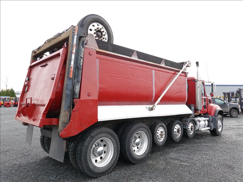 SUPER SOLO DUMP TRUCK, 427 HP AI-427, 13 SPD, STRONG INDUSTRIES 17' STEEL BOX, TARP SYSTEM, CAMELBACK SUSPENSION, 260" W/B, (3) DROP AXLES, HOUR METER READS: 25,682
