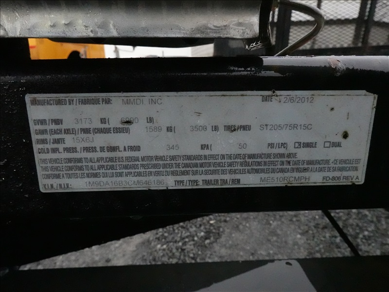 T/A, 10' X 5'4" FLATBED TRAILER, TORSION SUSPENSION, RAMPS, SURGE BRAKES, 205/75R15