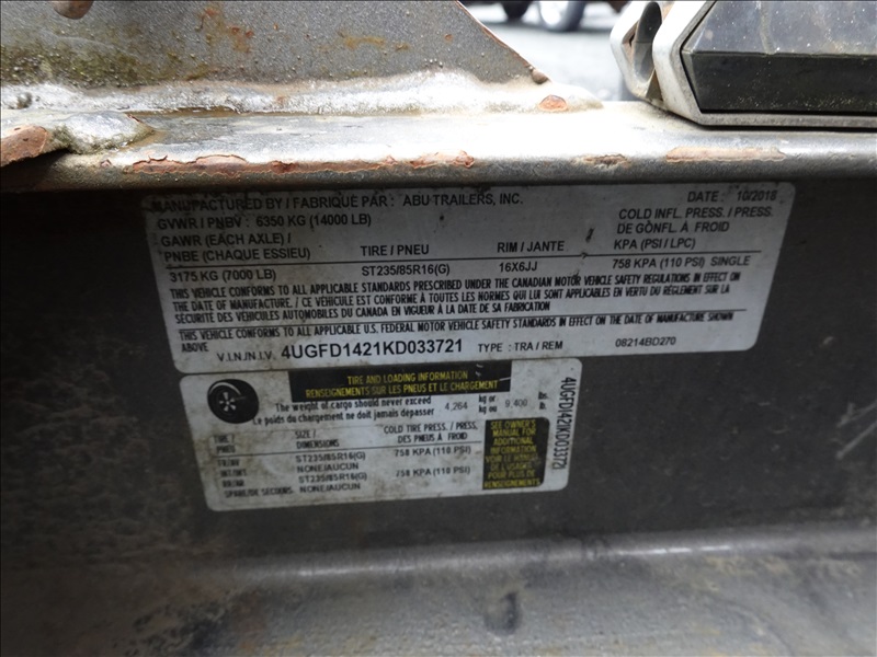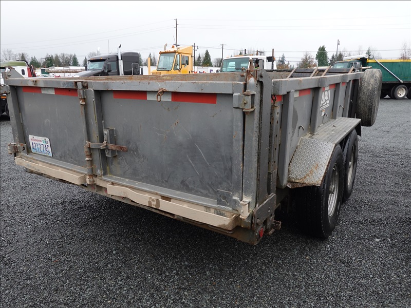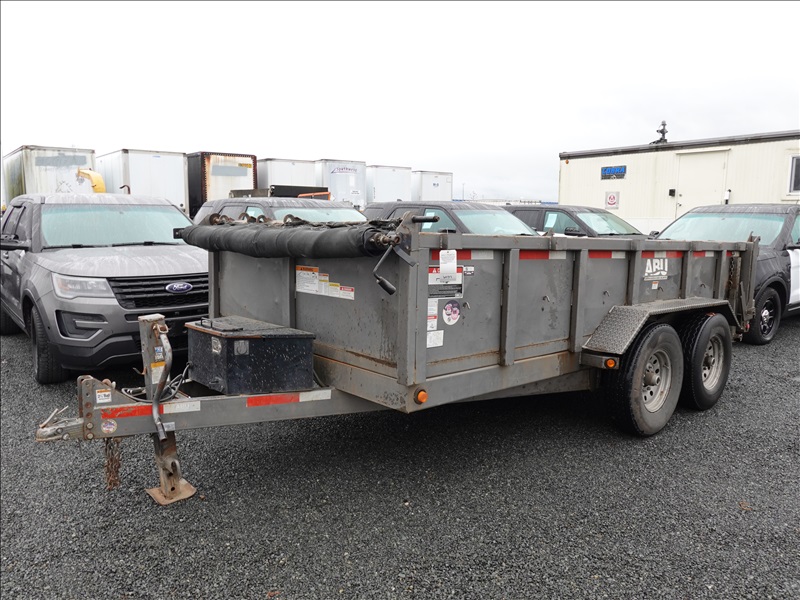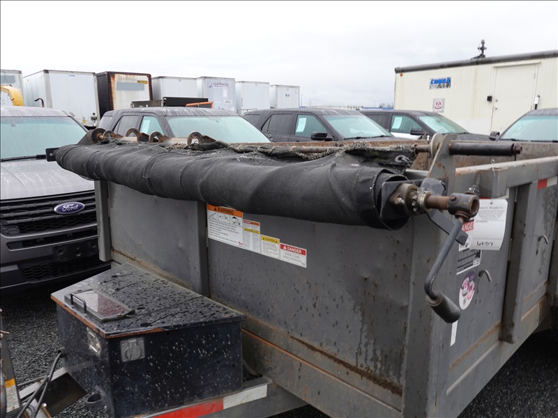 T/A, 14' X 7' DUMP TRAILER, SPRING SUSPENSION, TARP, RAMPS, ELECT BRAKES, 235/85R16