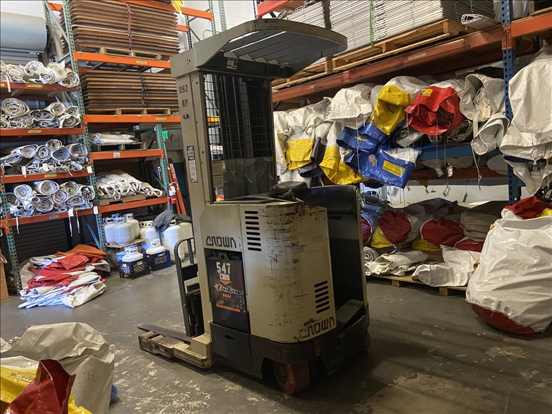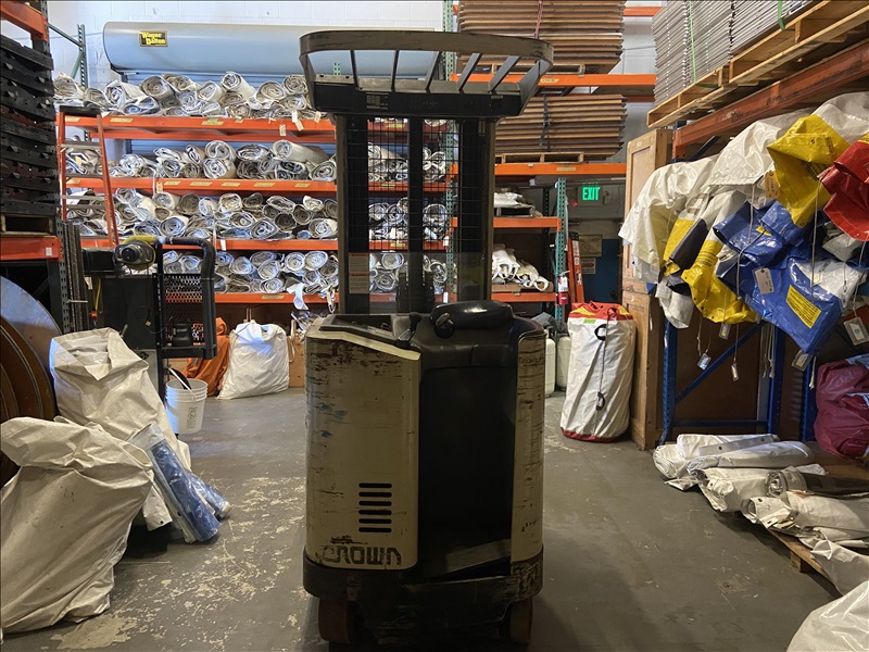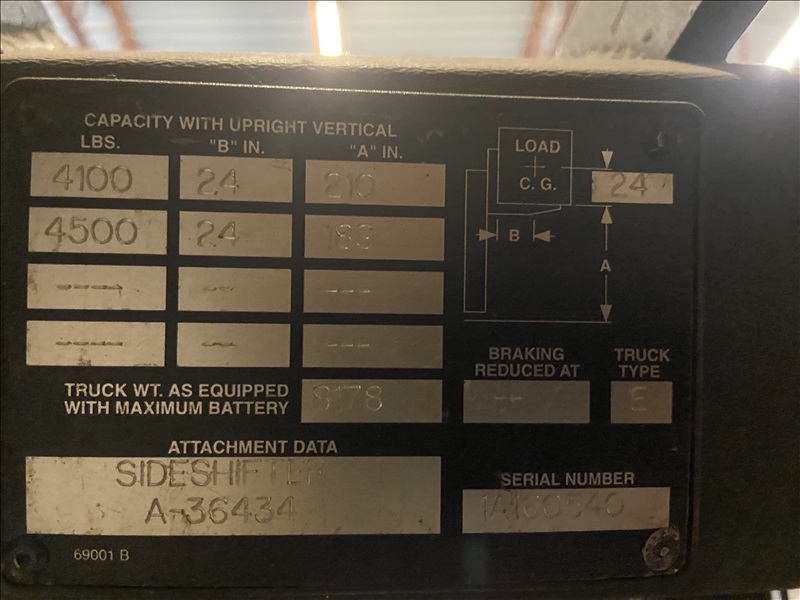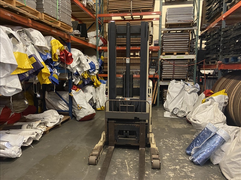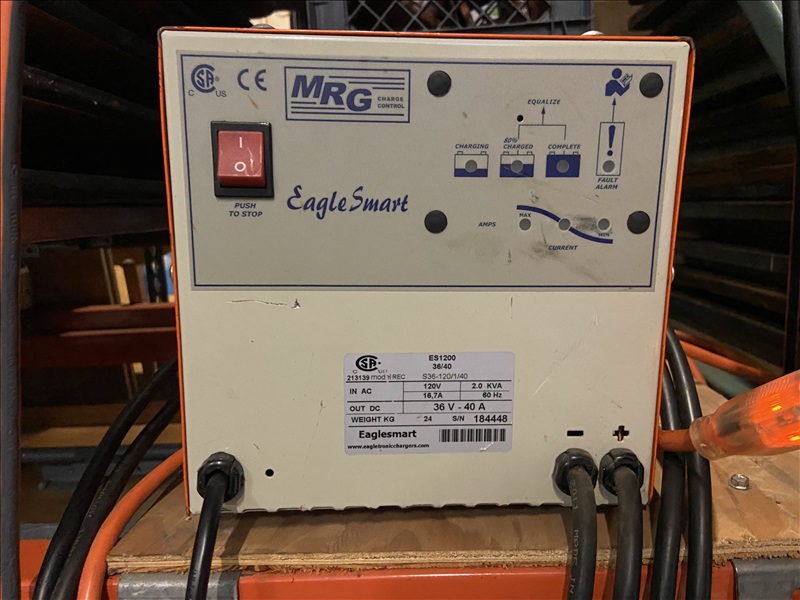 4,500 LB STANDUP NARROW-AISLE ELECTRIC SINGLE-REACH FORKLIFT W/20' REACH TRIPLEX MAST, SIDESHIFT, MRG EAGLE SMART 120V INPUT/36V OUTPUT PORTABLE CHARGER (BATTERY RECENTLY RECONDITIONED)