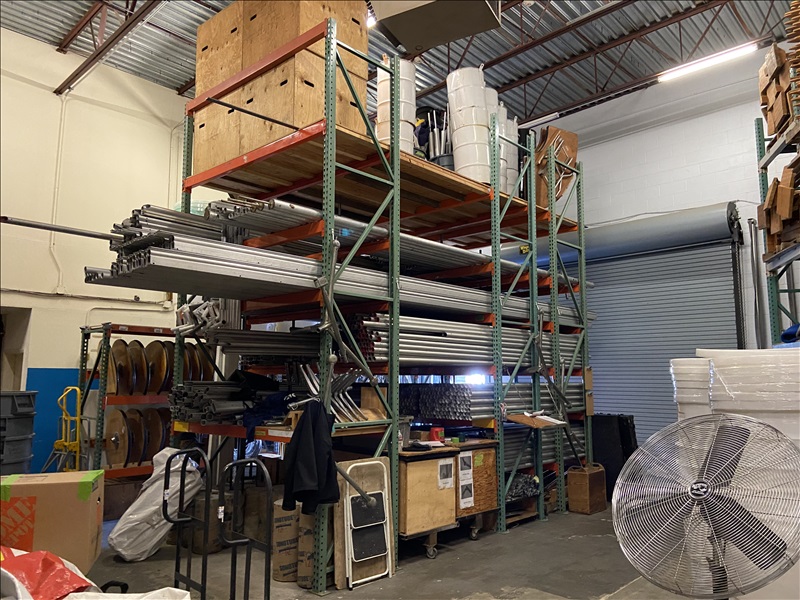 10'X18'X16' METAL TENT POLE PALLET RACK UNIT W/WOOD STORGE MEZZANINE