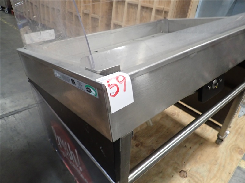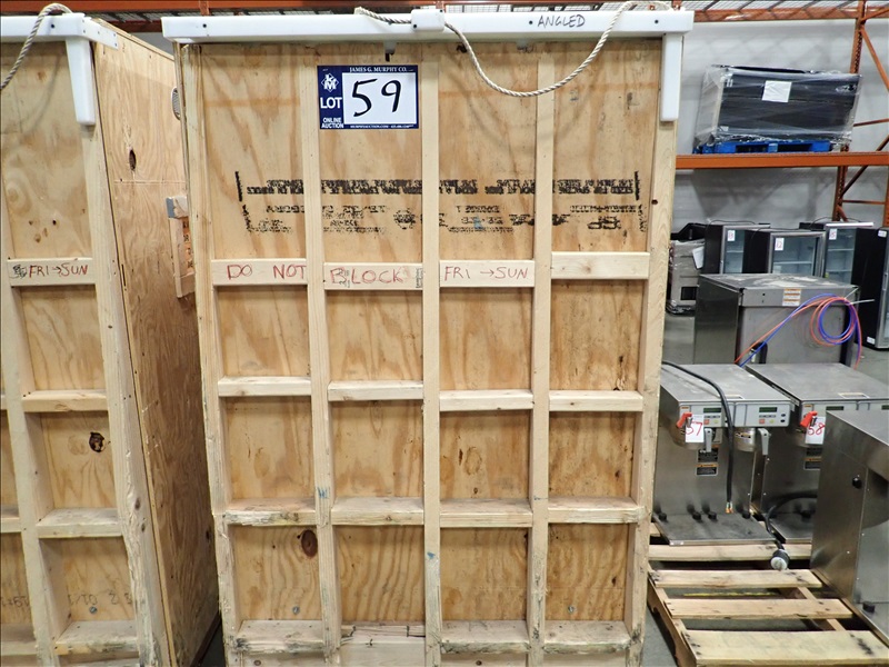 SS 46"X32" ANGLED SEAFOOD MERCHANDISER ON CASTERS W/CUSTOM BUILT RAMP DOOR CRATE