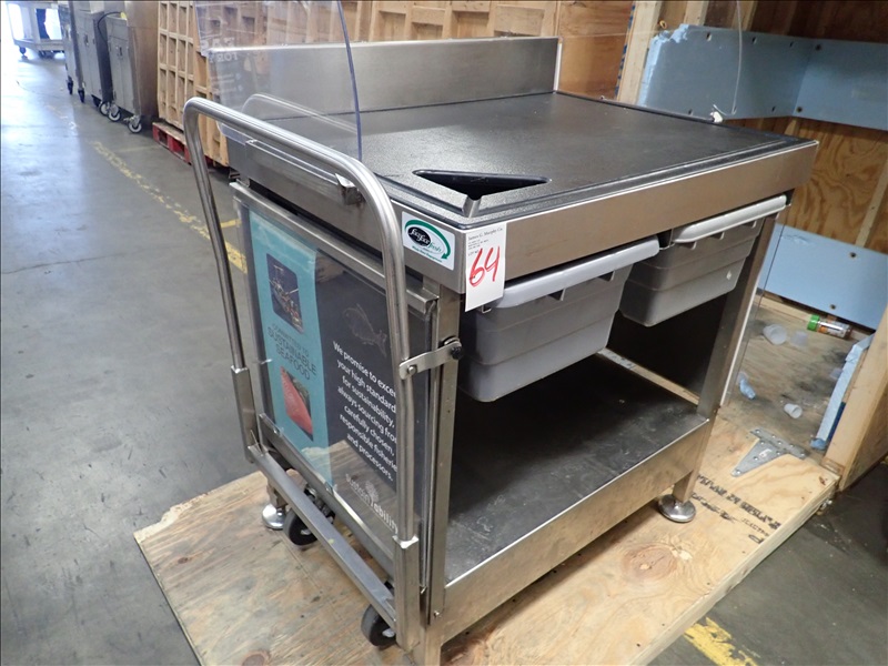 SS 35"X28" POLY TOP PORTABLE PREP STATION ON CASTERS W/CUSTOM BUILT RAMP DOOR CRATE
