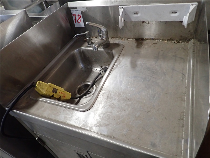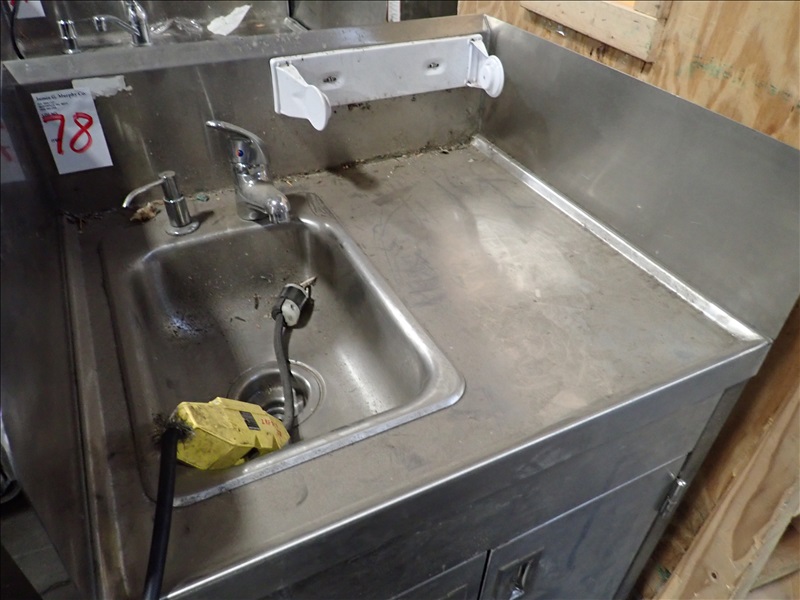 SS 26"X24" SELF-CONTAINED PORTABLE HAND WASH SINK W/PUMP, WATER HEATER, WATER TANKS (MINOR COSMETIC DAMAGE)