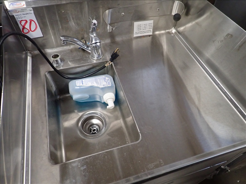 SS 26"X24" SELF-CONTAINED PORTABLE HAND WASH SINK W/PUMP, WATER HEATER, WATER TANKS (MINOR COSMETIC DAMAGE)