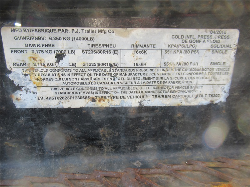14,000 CAP. T/A TILT DECK CAR TRAILER, APPROX. 21'LX82"W DECK SPACE, S/N: 4P5T62023F1230665