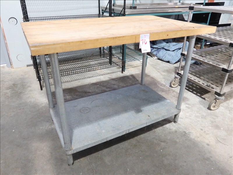 48" X 30" X 35" BUTCHER BLOCK TOP BAKERY TABLE W/LOWER SHELF