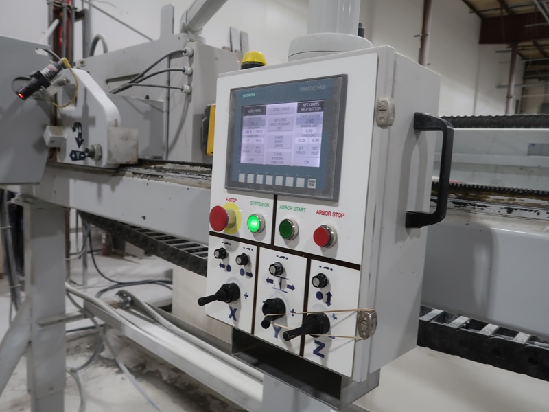 SEMI-AUTOMATIC BRIDGE SAW, 16" - 24" BLADE SIZE, 20HP MOTOR, SIMATIC HMI CONTROLS, 11'X6' HYDRAULIC TILT TABLE, MITER CAPABILITIES