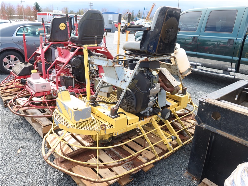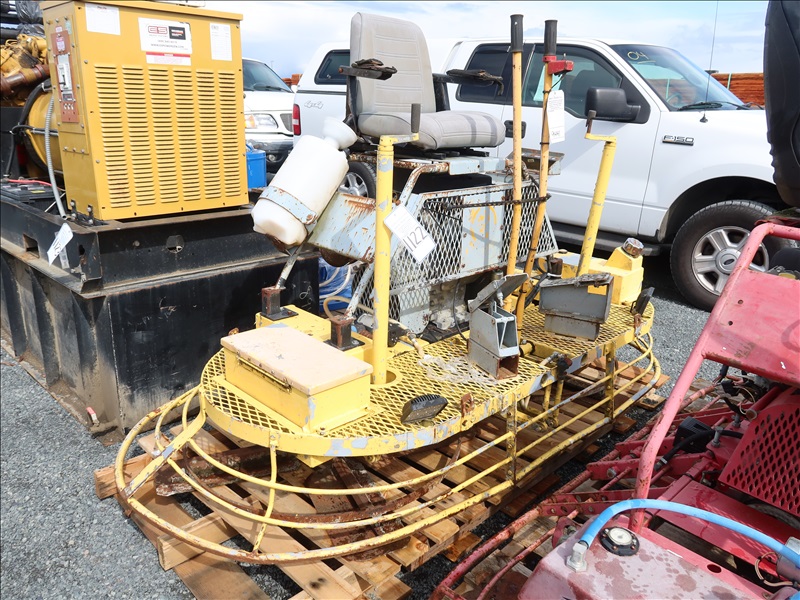 APPROX 7'W RIDE-ON POWER TROWEL W/KOHLER 2 CYL GAS ENGINE, HOUR METER READS: 937