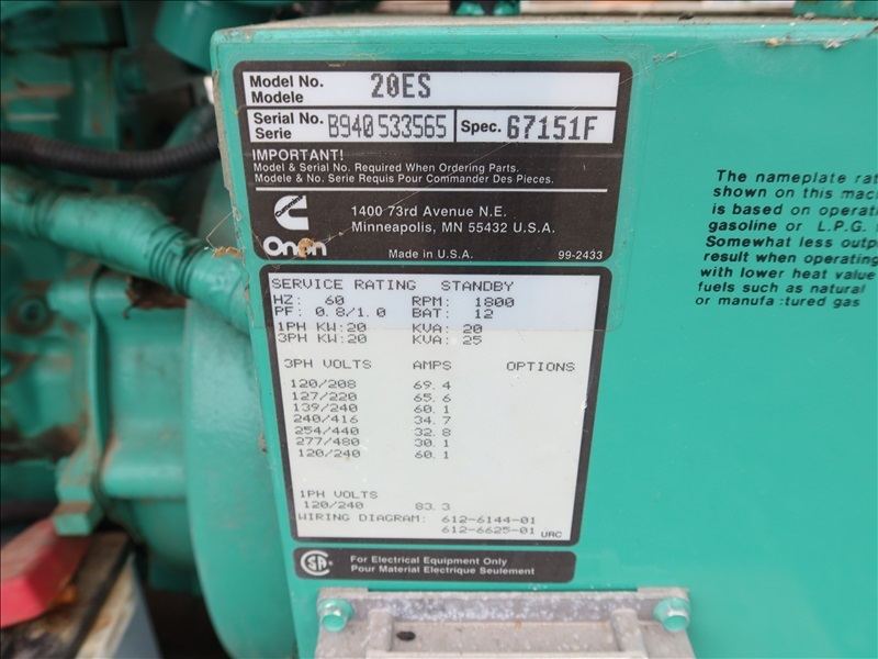 SKID MOUNTED GENERATOR W/FORD 4 CYL GAS ENGINE & CONTROLS, 120/240/480V, 3 PHASE, HOUR METER READS: 817