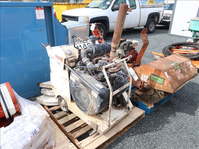 WALK BEHIND CONCRETE SAW W/WISCONSIN 4 CYL GAS ENGINE & (3) ASSORTED GUARDS (NEEDS REPAIR)