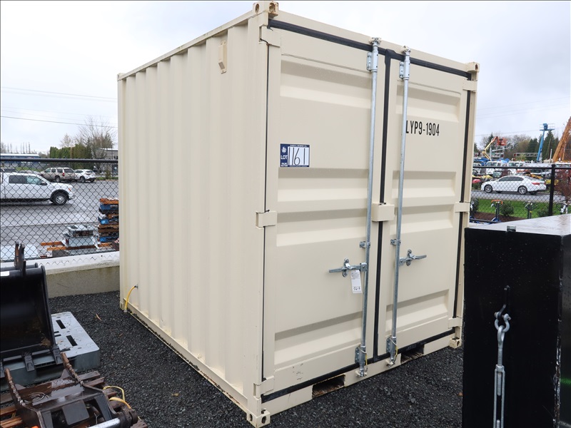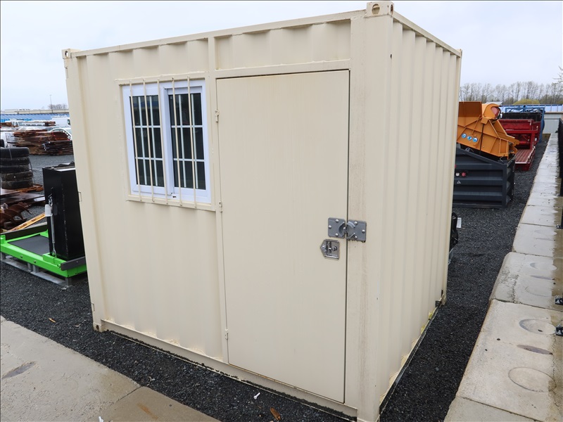 9'L X 88"W X 98"H PORTABLE OFFICE CONTAINER W/DOUBLE SWING END DOORS, MAN DOOR, WINDOW FORK POCKETS, PUCK LOCK BRACKET, WIRED FOR POWER, 110V (NO REMOVAL BEFORE THURSDAY, APRIL 18TH)