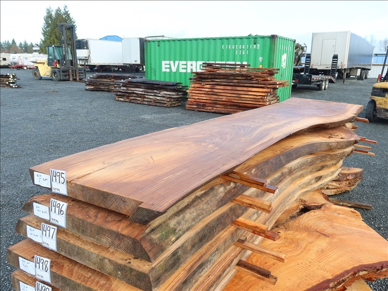 2-1/2" X 145" 2-YEAR AIR DRY LIVE EDGE ELM SLAB (LARGE END 34", SMALL END 25", MEASUREMENTS ARE APPROX)