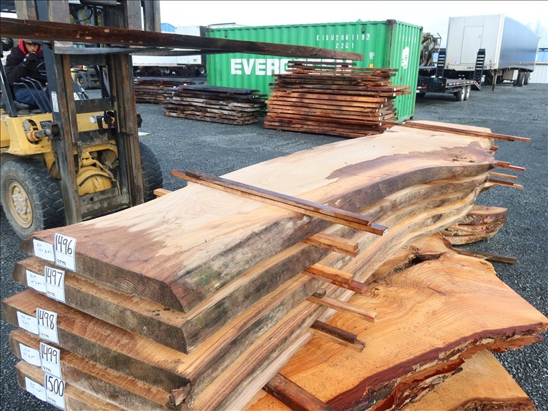 2-1/2" X 145" 2-YEAR AIR DRY LIVE EDGE ELM SLAB (LARGE END 25", SMALL END 24", MEASUREMENTS ARE APPROX)