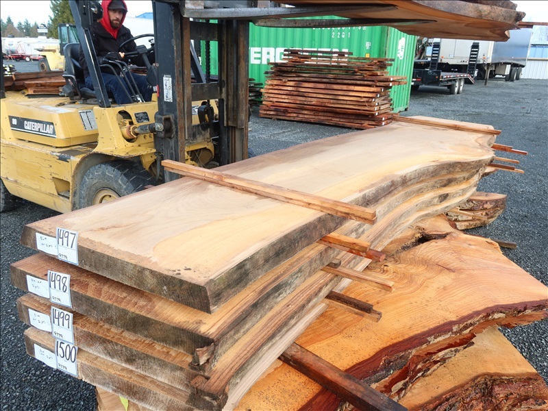 2-1/2" X 145" 2-YEAR AIR DRY LIVE EDGE ELM SLAB (LARGE END 28", SMALL END 26", MEASUREMENTS ARE APPROX)