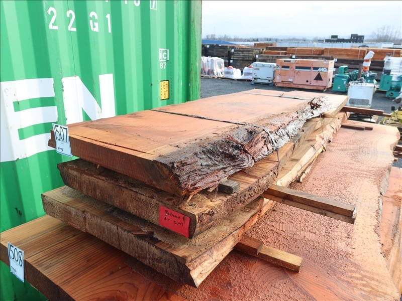 LOT, (3) 2-1/2" 2-YEAR AIR DRY LIVE EDGE REDWOOD SLABS AT APPROX 60", 98" & 99" LENGTHS