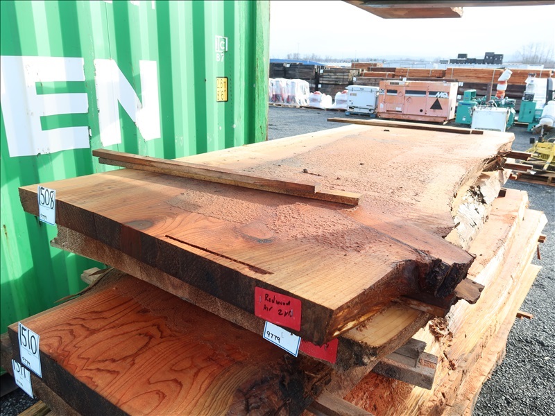 2-1/2" X 100" 2-YEAR AIR DRY LIVE EDGE REDWOOD SLAB (LARGE END 38", SMALL END 37", MEASUREMENTS ARE APPROX)