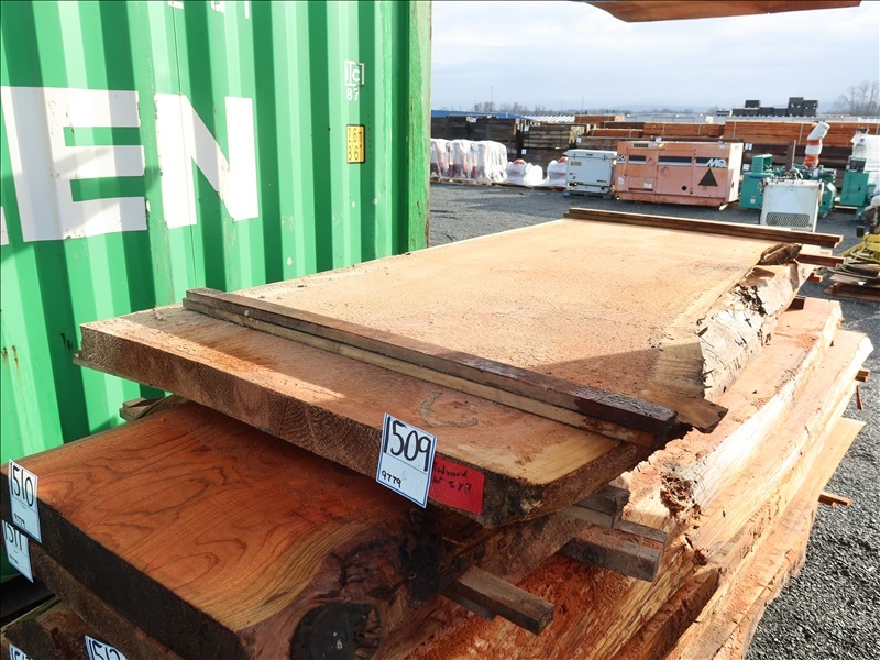 2-1/2" X 100" 2-YEAR AIR DRY LIVE EDGE REDWOOD SLAB (LARGE END 37", SMALL END 34", MEASUREMENTS ARE APPROX)