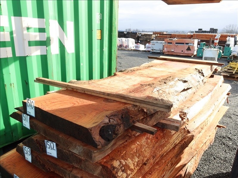 3" X 122" 4-YEAR AIR DRY LIVE EDGE CEDAR SLAB (LARGE END 43", SMALL END 27", MEASUREMENTS ARE APPROX)