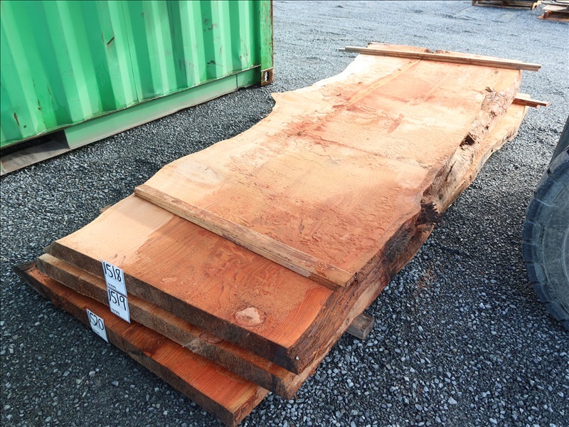 2-1/2" X 122" 4-YEAR AIR DRY LIVE EDGE CEDAR SLAB (LARGE END 47", SMALL END 35", MEASUREMENTS ARE APPROX)