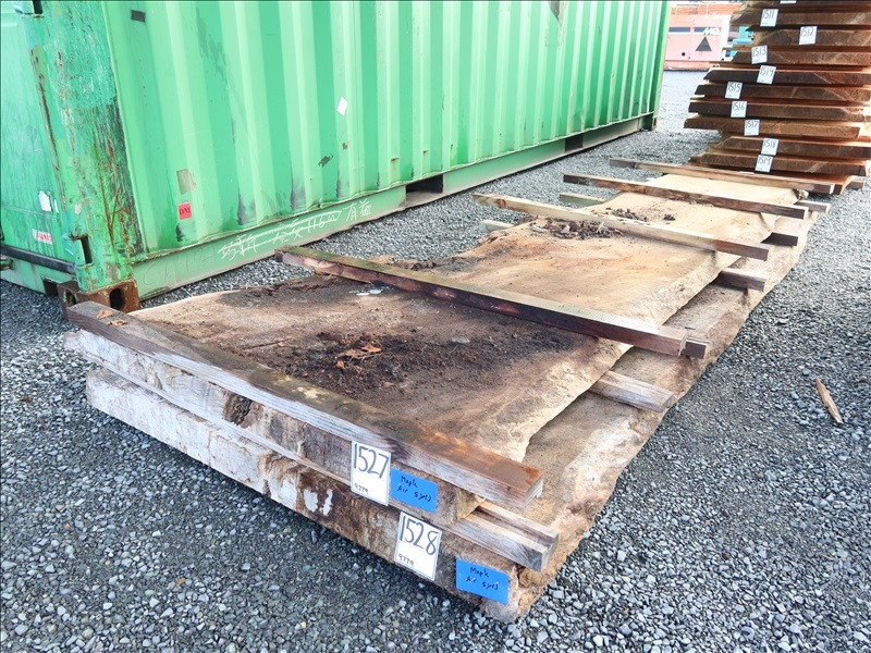 2-1/2" X 123" 5-YEAR AIR DRY LIVE EDGE MAPLE SLAB (LARGE END 45", SMALL END 27", MEASUREMENTS ARE APPROX)